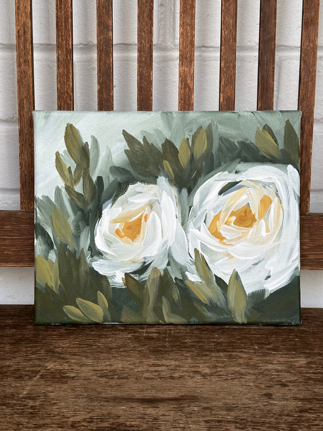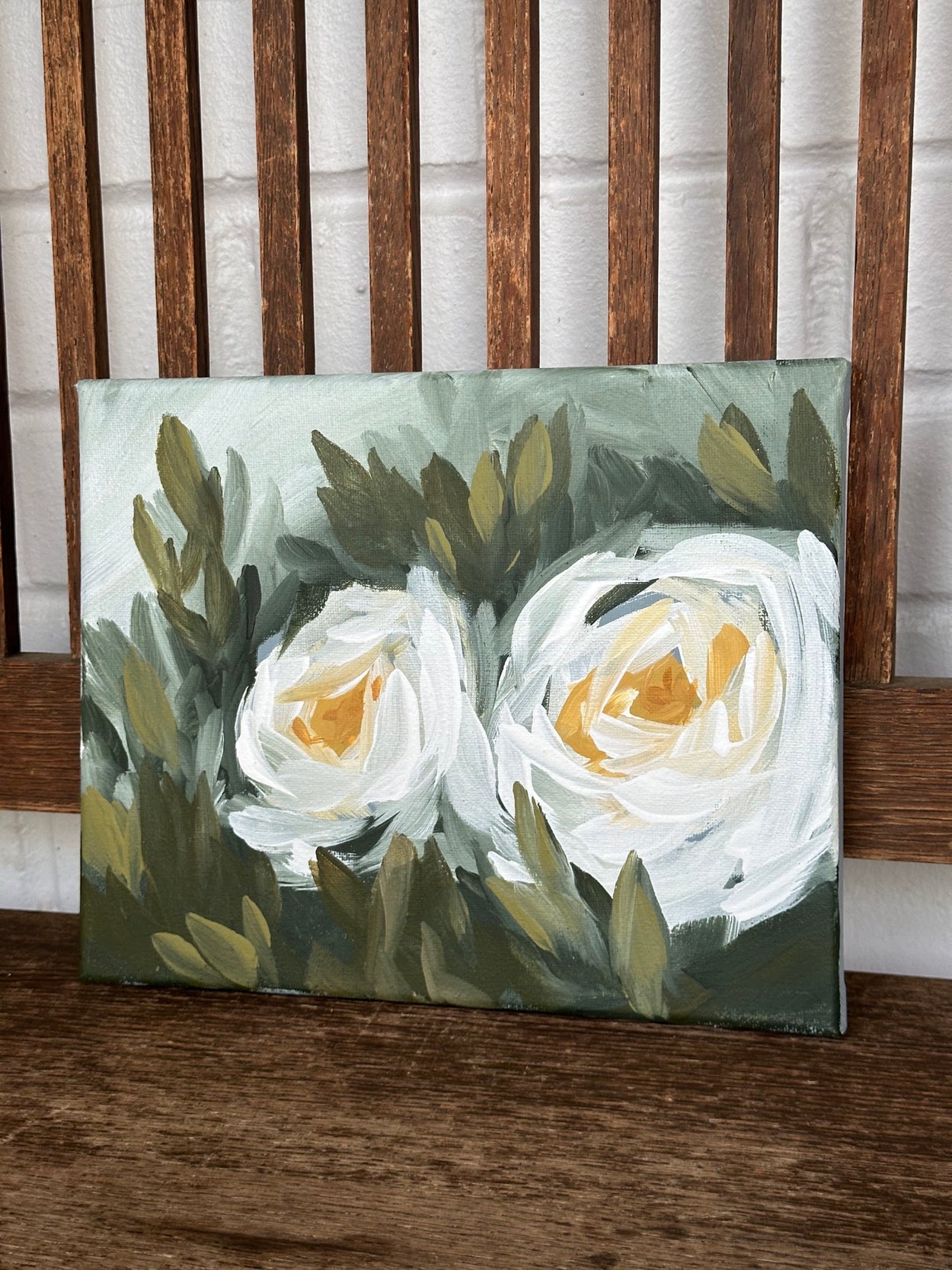 This painting is 8”x10” and comes framed in walnut toned rustic wood. The frame adds about an inch to each side. It is sealed with a protective varnish.