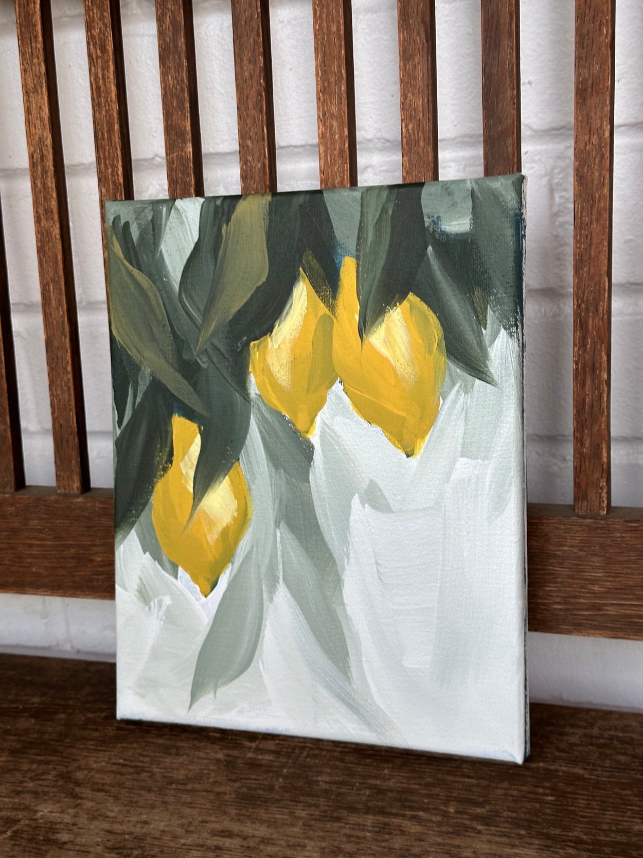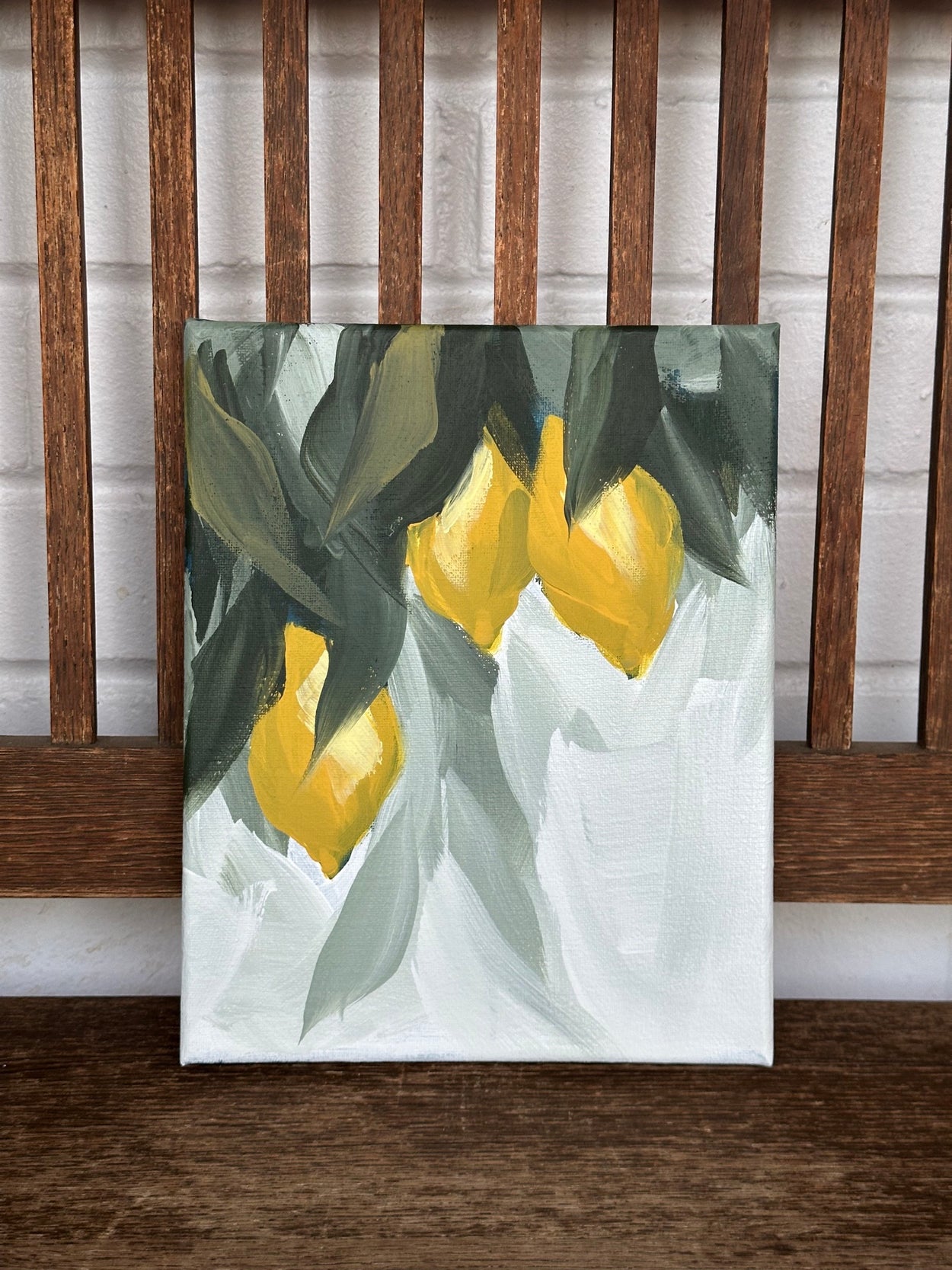 This painting is 8”x10” and comes framed in walnut toned rustic wood. The frame adds about an inch to each side. It is sealed with a protective varnish.
